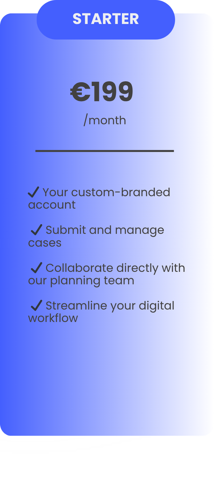 Everything you need to manage your clear aligner treatment planning, in one place. Submit cases, collaborate with our clinical experts, and track progress through a simple, transparent digital workflow designed for modern dental practices and labs.Ideal for practices that want to test and discover the system